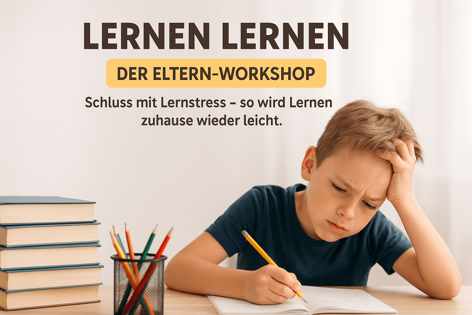 Der Workshop, der Lernen leichter macht: Weniger Stress, mehr Motivation, klare Strategien – damit Dein Kind wieder an sich glaubt.